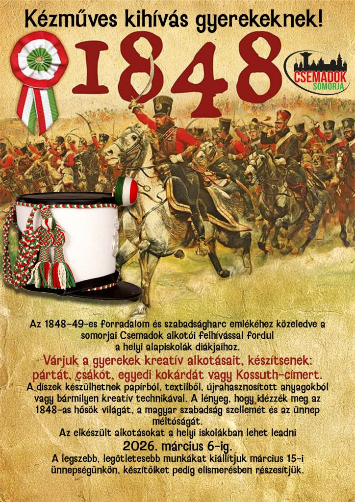 Az 1848–49-es forradalom és szabadságharc emlékére alkotói felhívással fordulunk a somorjai/tejfalusi alapiskolák diákjaihoz.